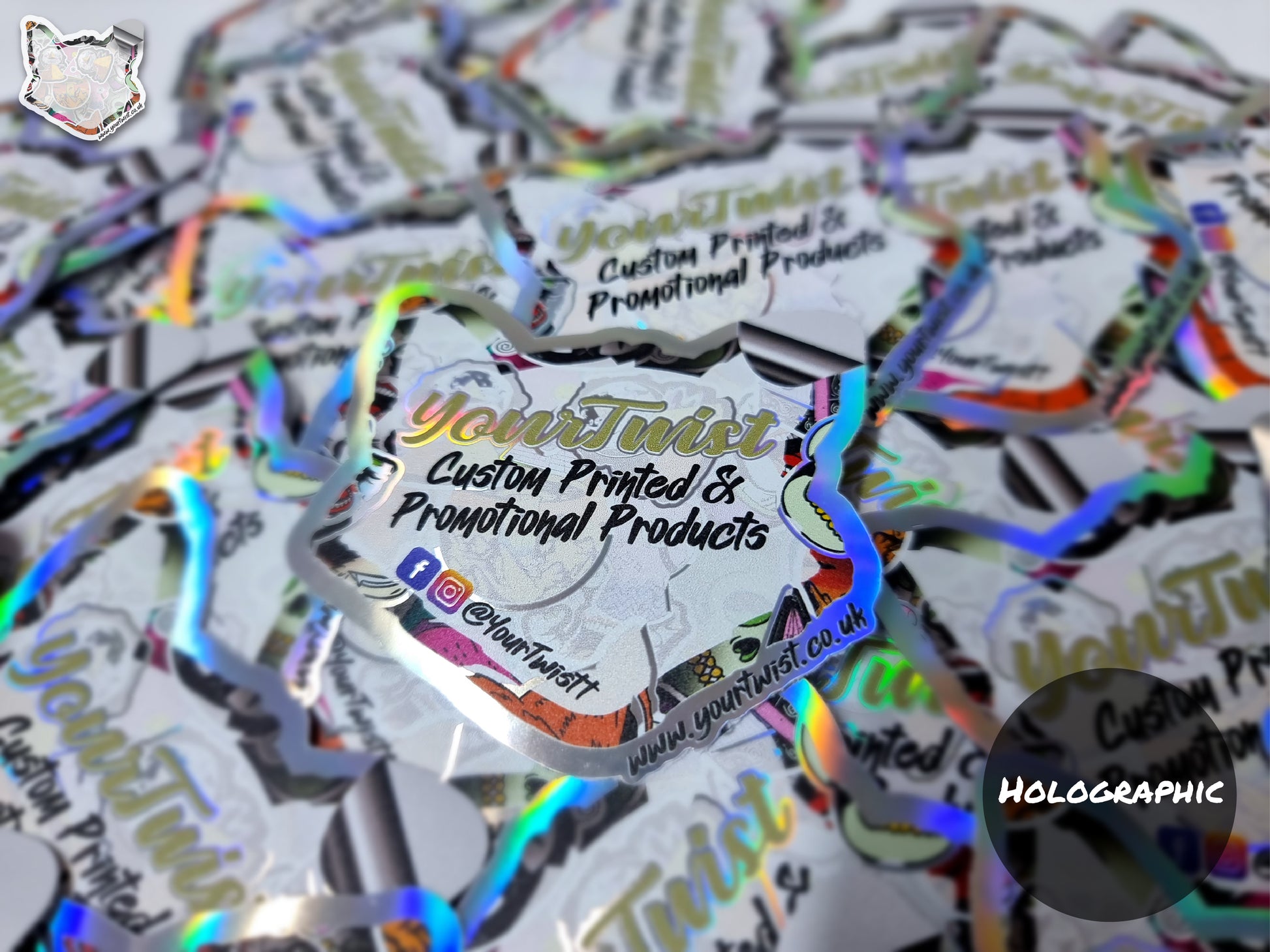 Custom die-cut stickers (also called contour-cut or custom-shaped) are printed with durable, weatherproof inks and cut to any shape you want.